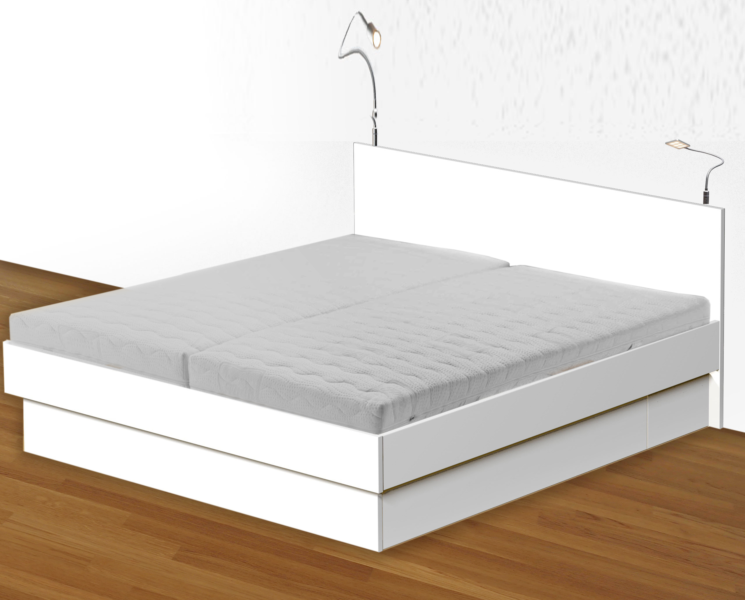 Absolut zeitlos! Doppelbett B7 mit geradem Kopfteil geschlossenem Sockel.