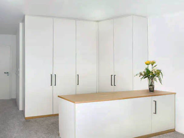 Ein weiterer Vorzug weißer Einbauschränke ist ihre Fähigkeit, den Raum optisch zu vergrößern und den Raum offener und einladender wirken zu lassen. Sie lassen sich mit nahezu allen Gegebenheiten im Raum kombinieren.